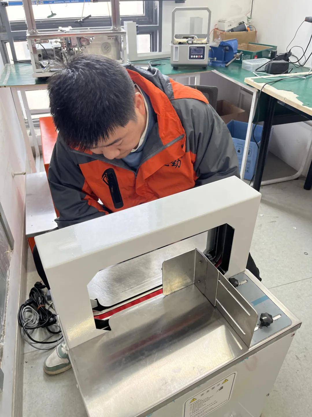 1.检查并调整张力:参照设备说明书,调整打包带的张力设置。打包带收紧后应能有效束缚货物,但用手按压打包带中部时应有轻微弹性(约可压下5-10mm),不能过松下垂或过紧绷直断裂。