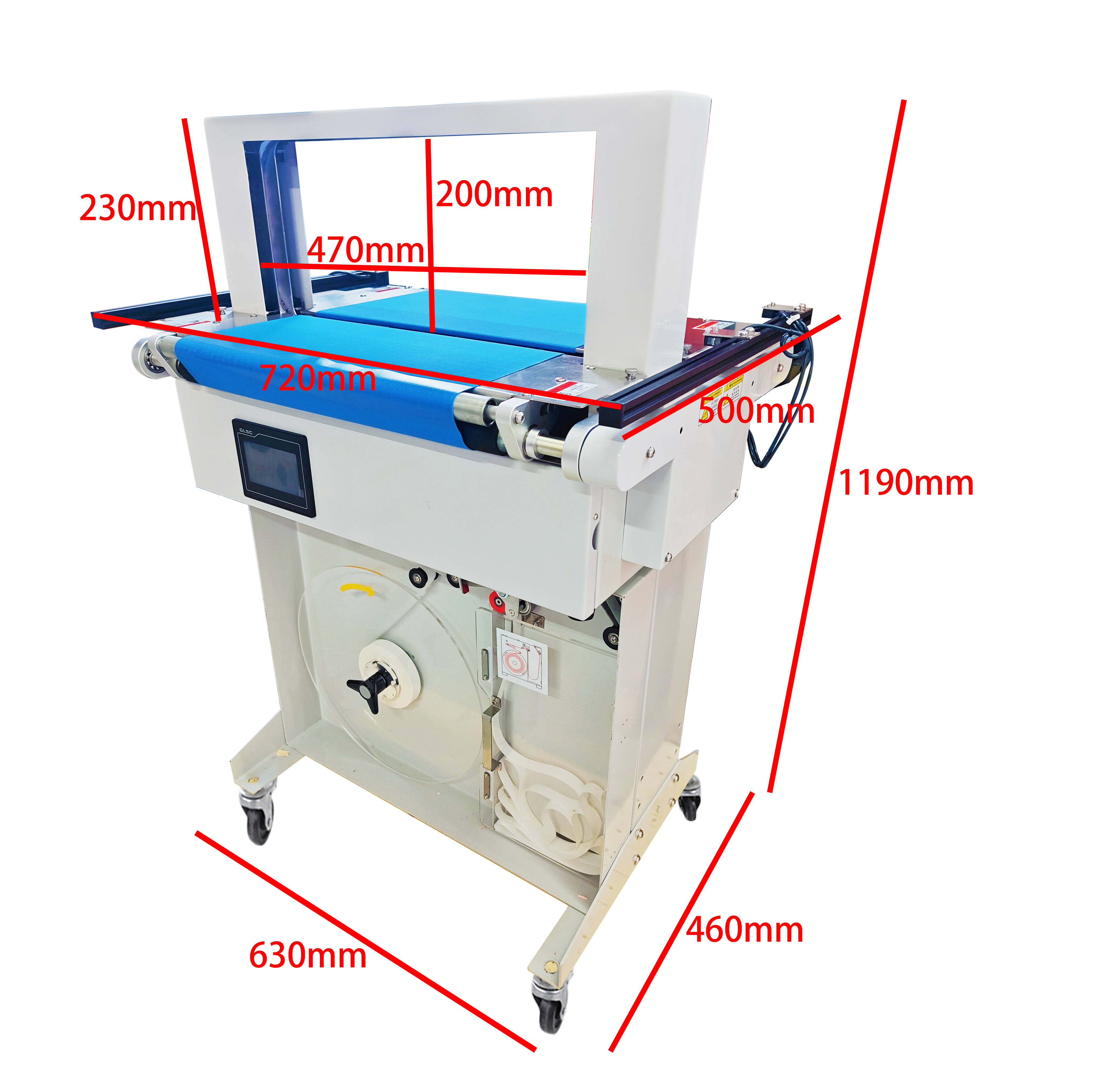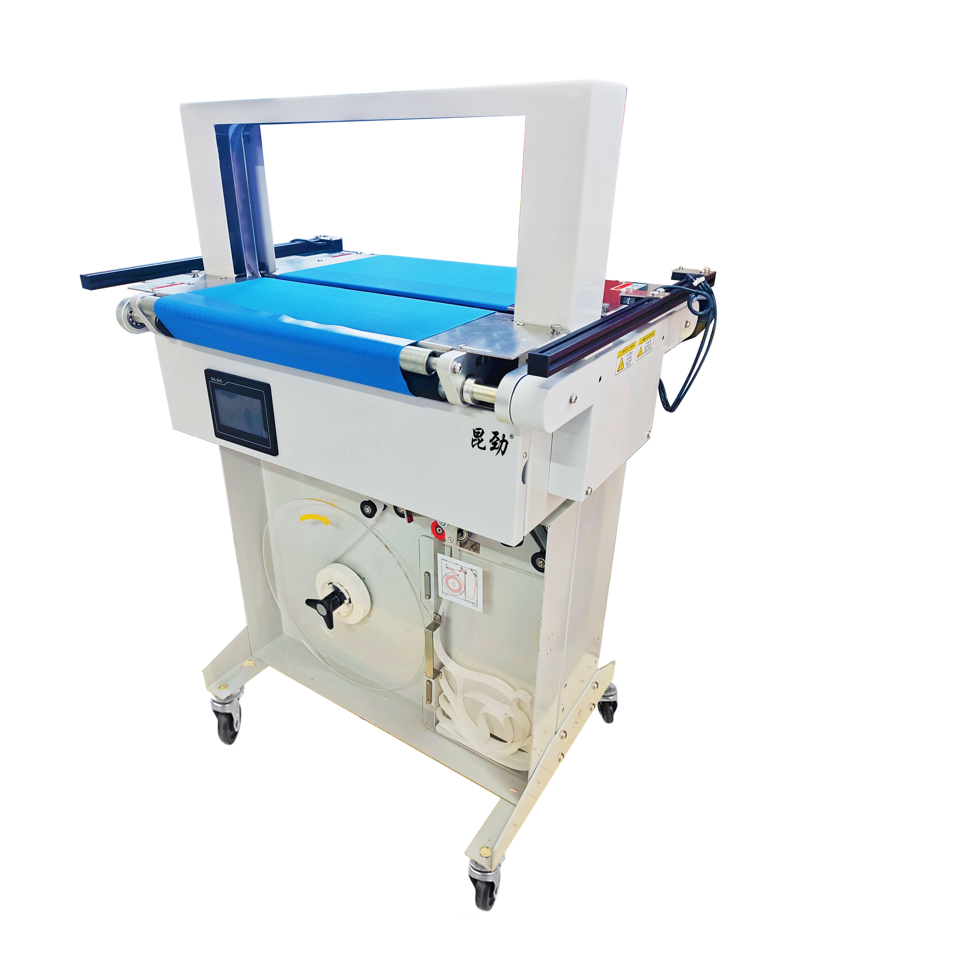 其三,细节设计更贴心:适配 20mm/30mm 宽度的无胶捆扎带,避免了残胶污染物品的问题;配备自动停机、电磁刹车功能,能耗仅 200W,运行噪音低,既节能又能营造更舒适的作业环境;机身带脚轮设计,便于在车间内灵活移动,适配不同作业区域的需求。